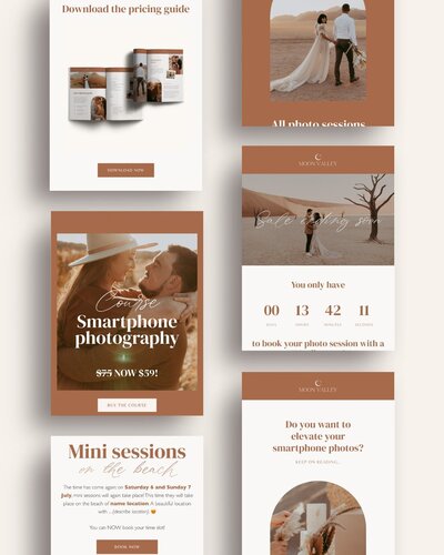 If you’re ready to elevate your business as a photographer or boss babe, this is your go-to toolkit. You'll get 14 email templates designed to streamline your workflow - think newsletters, photoshoot confirmations and reminder emails. Plus, they're perfect for boosting sales with mini sessions, teaser campaigns, and launch notifications.