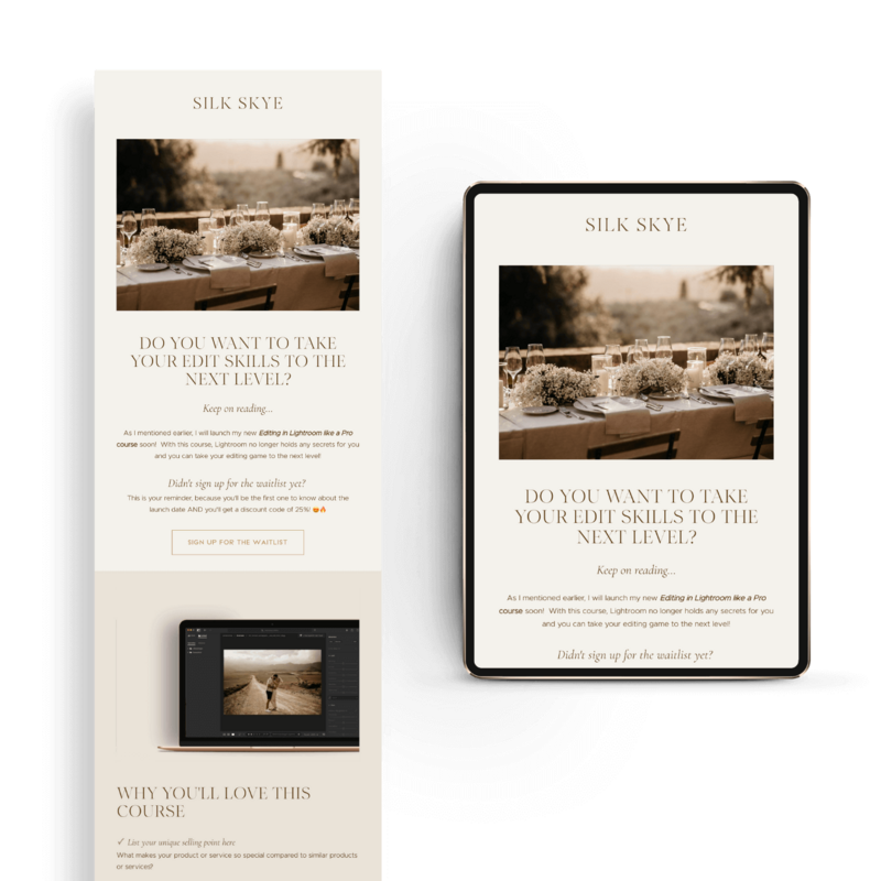 With this email template, you can offer sneak peeks about your new product / service and give readers a little nudge to take action. Encourage them to hop on a waitlist - before you know it, you'll be turning those curious clicks into conversions!